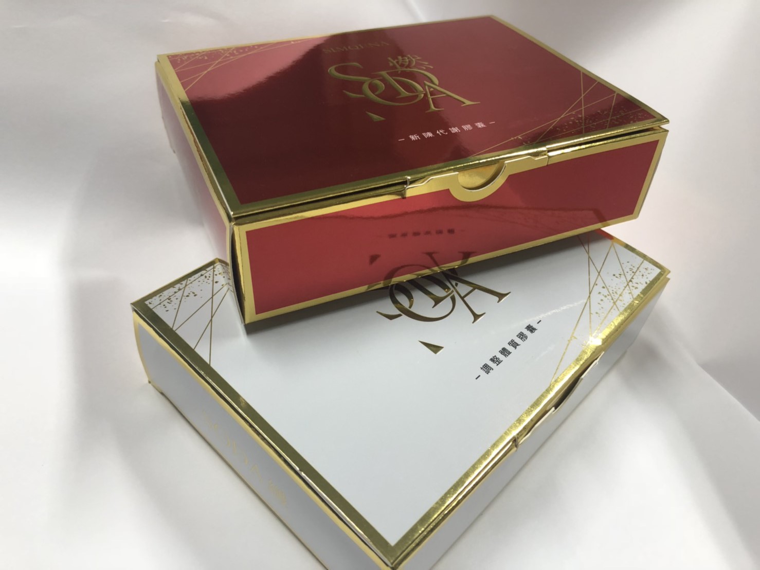飛機盒.灰銅卡彩印.霧膜.內裱白E浪.人字繩